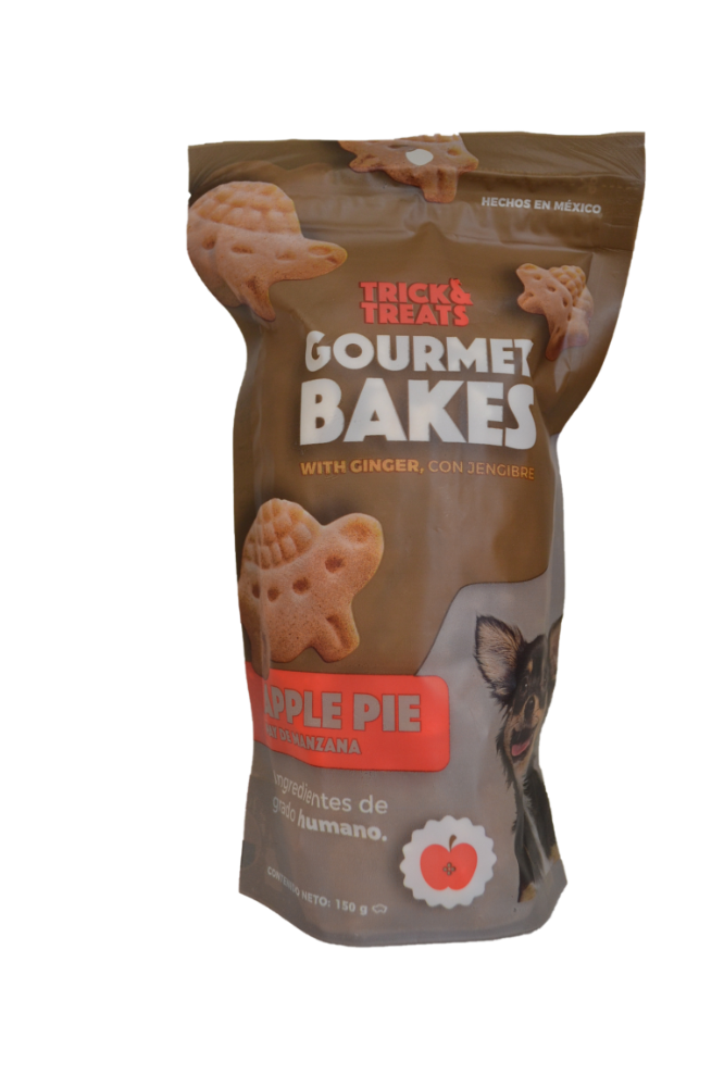 Te presentamos las deliciosas galletas horneadas de Trick & Treats que ya conoces, ahora en un práctico empaque que podrás llevar a donde lo necesites para consentir a tus perrhijos. Las galletitas de Gourmet Bakes en sabor pay de manzana son ideales para perros medianos pero, ¡cualquiera las puede disfrutar sin problema!.