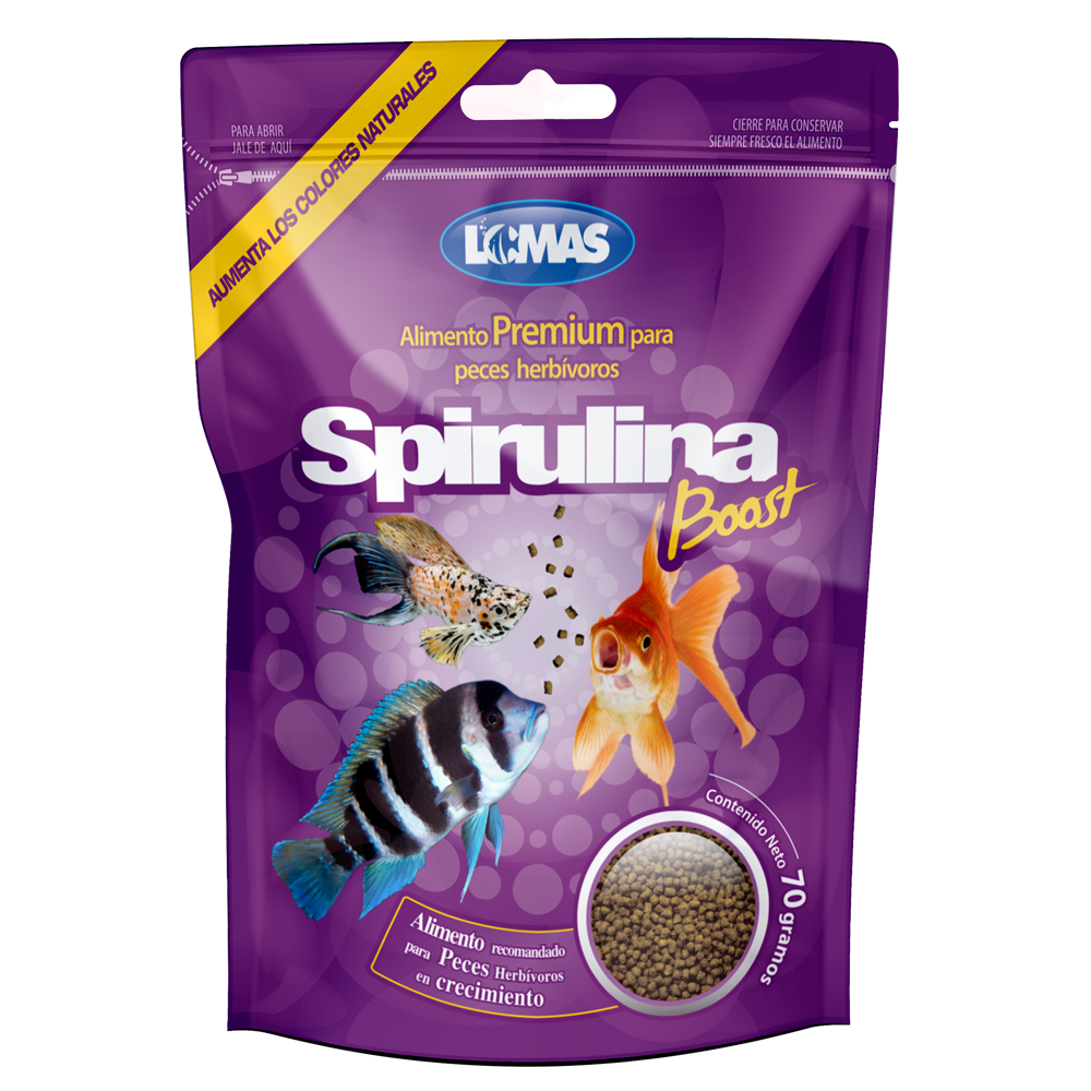 El alimento Premium para peces herbívoros Spirulina Boost, es un alimento vegetal para peces herbívoros formulado con un alto contenido de alga espirulina para mejorar el color y estimular el crecimiento adicionado con vitamina C estabilizada y un suplemento multivitamínico, Spirulina Boost acentúa el color y promueve el crecimiento de los peces japoneses, cíclidos africanos y peces vivíparos (molies, platties y espadas).